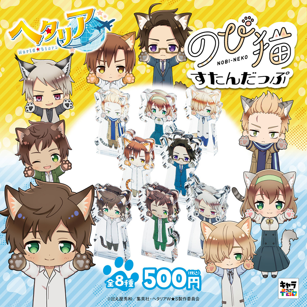 「のび猫」のちょこっと自立して飾りやすい分厚くかわいいアクリルブロックになりました。 第2弾はポルトガル、スペイン、プロイセン、ロマーノ、オーストリア、オランダ、ベルギー、ルクセンブルクの全8種です!!